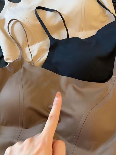 2024新しいスタイルの女性ヌード感覚シームレス気質スリムワンピースカップインナーストラップアウターウェア美しいバック多用途トップス