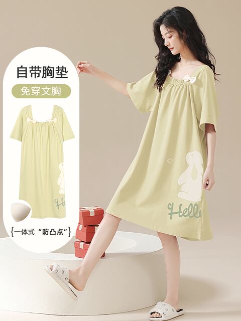 \新作登場!ナイトドレス レディース 夏 純綿 胸パッド付き - 暑い季節にぴったりな一枚です!/