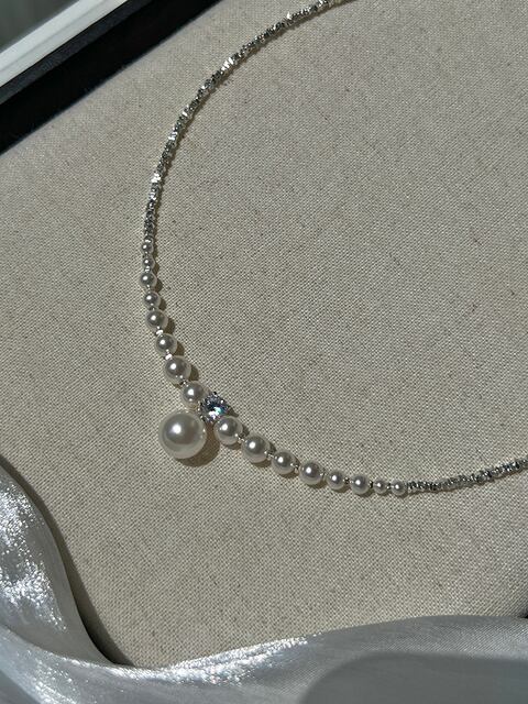 このネックレスは、深いグラデーションが施されたShijia強い光真珠が精巧なS925スターリングシルバーと絶妙に組み合わさり、視線を引きつける華やかさを演出します。普段のコーディネートに華やかさを添え、ご自身を特別な存在に引き立てます!
