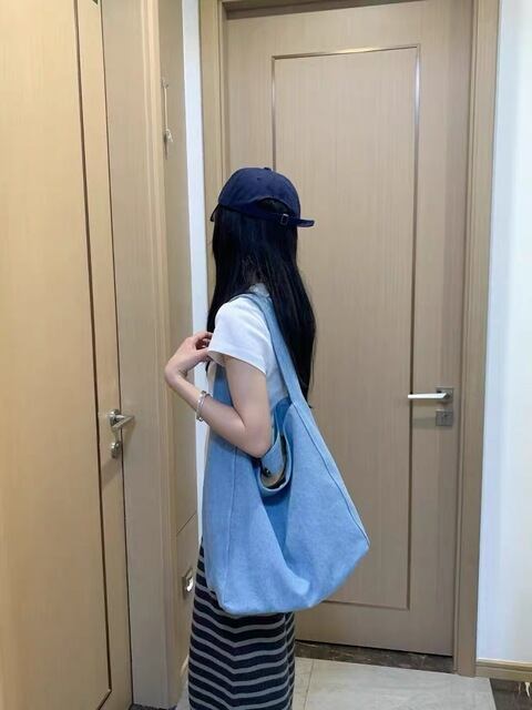 \新作登場!「韓国風のシンプルな大容量トートバッグ レディース 2025年新作 オールマッチ デニム キャンバス バッグ 通勤 ショッピングバッグ」あなたのスタイルを一層引き立てる特別なバッグです!/