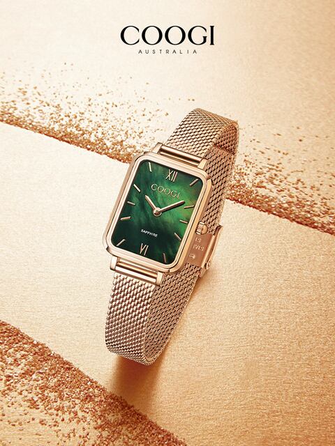 COOGI 小さなグリーンの腕時計 レディース腕時計 レディースクォーツ腕時計 防水 軽量 高級 欧米風 ファッション スチールベルト 彼女 誕生日プレゼント