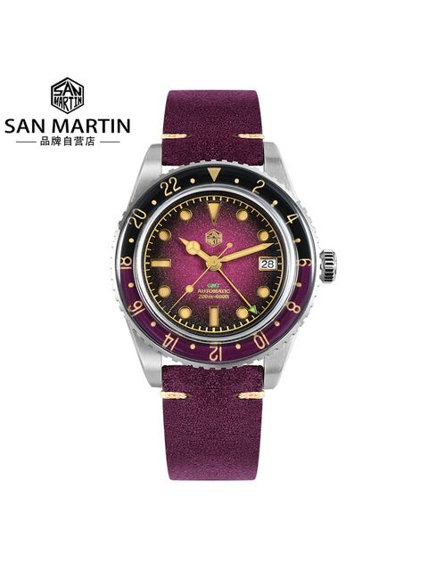 SANMARTIN コーラリング サファイアリング サンドイッチプレート 夜光 自動巻き 機械式時計 メンズ SN0134-1