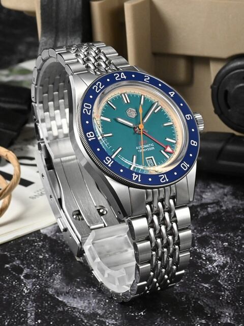 SanMartin ミリタリーソウルウォッチ ルミナス GMT デュアルタイム 自動巻き機械式時計 メンズ スポーツ 防水時計 SN0116G