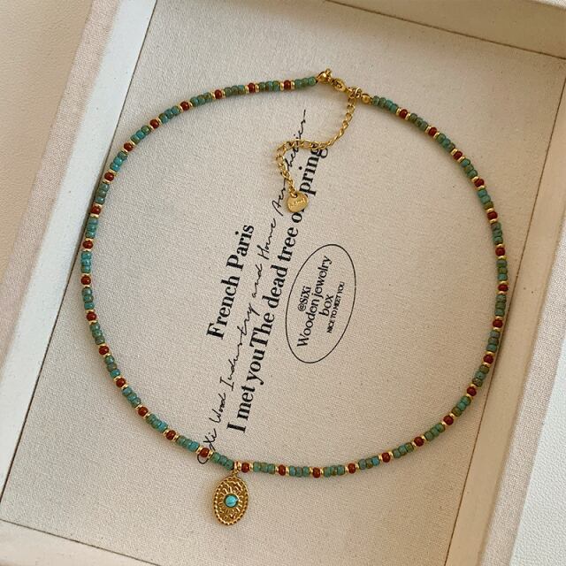 本商品は、天然のビーズが奏でる豊かな色合いとユニークな表情が魅力です!鎖骨を優雅に強調し、お手持ちのコーディネートに華やかさをプラスします。特にインスタグラムなどのSNS映えも抜群です!