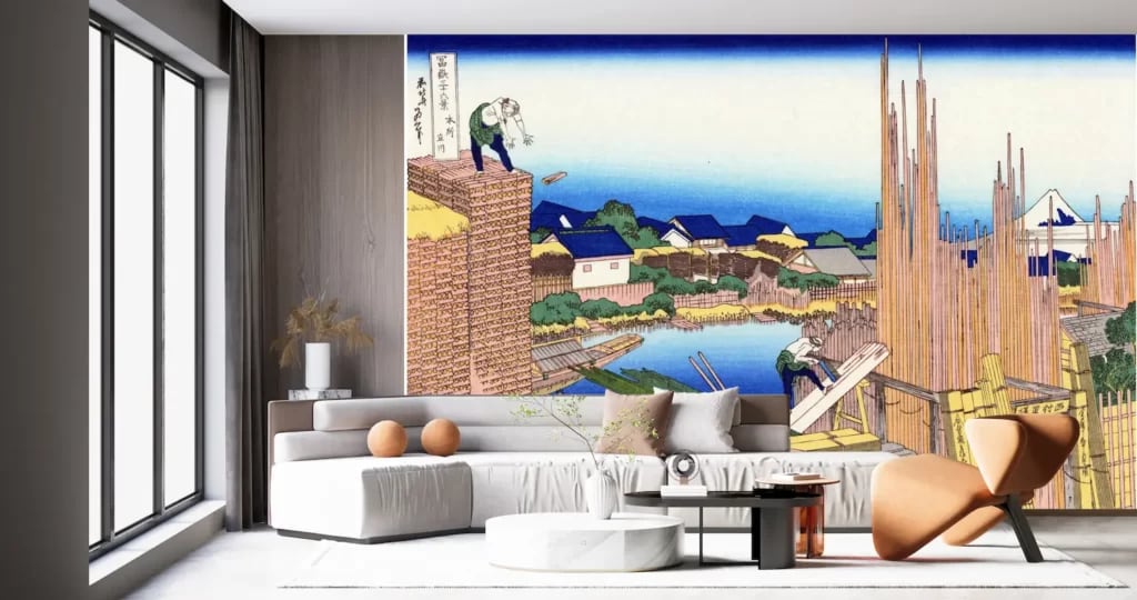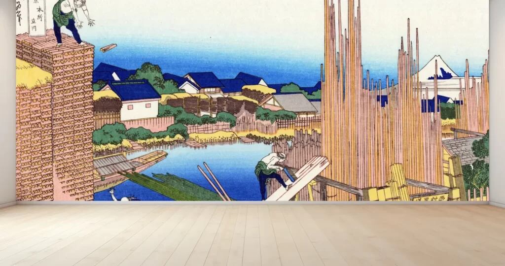 葛飾北斎の代表作「冨嶽三十六景 本所立川」をデザインしたクロス。日本画の風景をインテリアに取り入れられる贅沢な一枚です。デジタルプリントによる美しい色彩と細部まで再現されたデザインは、時代を超えて魅了します。塩化ビニル樹脂系壁紙なので、お部屋の壁に安心して貼り付けることができます。日本の伝統と現代のテクノロジーが融合した一枚を、ぜひお部屋のアクセントにお迎えください。