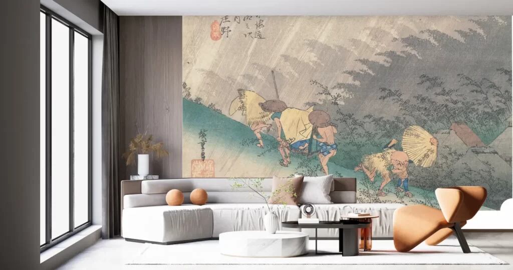 この壁紙アートは、日本の名画家・歌川広重による代表的な作品の一つである「庄野 白雨」を描いたアートで、お部屋の雰囲気を一新させることができるアイテムです!彼の独特な視点が、どんなインテリアにも美しさと奥行きを加えます。