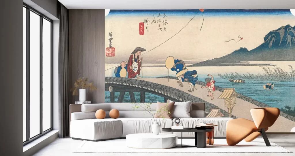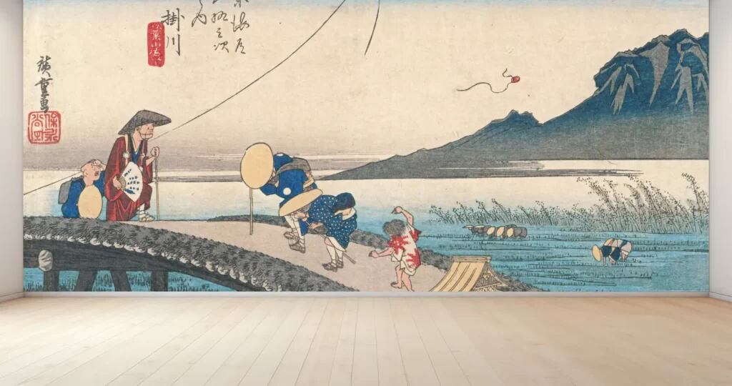 この壁紙アートは、江戸時代の浮世絵師・歌川広重による名作で、掛川から望む秋葉山の壮大な景観を描いています。お部屋の雰囲気を一新させることができるアイテムです!広重の独特な視点が、どんなインテリアにも日本の伝統美を加えます。