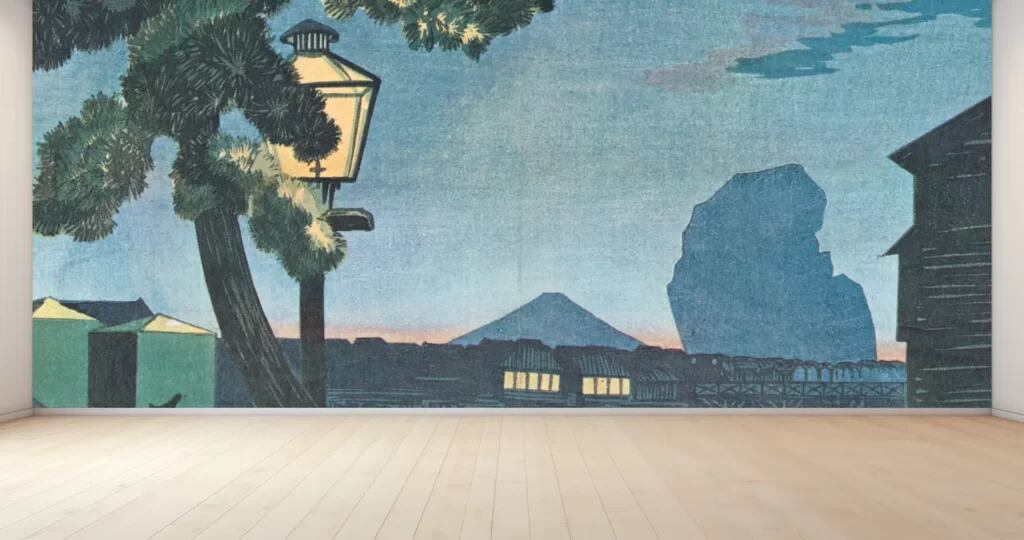 小林清親浮世絵師のデジタルプリント壁紙。伝統的な浮世絵の美しさがインテリアを彩ります。壁に貼るだけで部屋が一気に華やかになる、新感覚の壁紙アートです。塩化ビニル樹脂系壁紙なので、取り扱いも簡単。お部屋の雰囲気を一新したい方におすすめです。