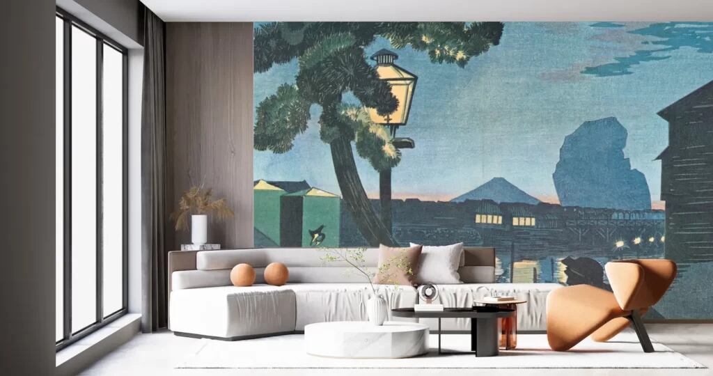清親の優れた技術と独創的な表現が融合したこの壁紙は、まるで絵画が部屋に飾られたようなリアリティを感じさせます。様々なテイストやスタイルのインテリアにマッチし、お部屋を一層魅力的に演出します。